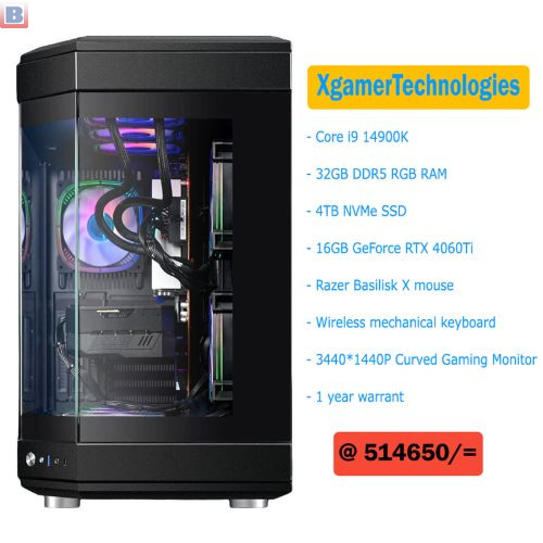 FEATURES: PROCESSOR : Intel Core i9 14900K 24 Cores 32 Threads up-to 6 GHz Unlocked LGA1700 Processor for desktop /LIQUID CPU and GPU COOLERS : 360mm CPU water liquid cooler /MOTHERBOARDS :Z790 P WIFI Prime 12th_13th_14th gen Gaming Desktop Motherboard /RAM : 32GB DDR5 RGB UDIMM Desktop Ram single stick{ brand new } /COMPUTER CASINGS : WJCOOLMAN Y40 BLACK 6 DIAMOND FAN ARGB GAMING CASE / CASE FAN :120MM 6pin interface ARGB CASE FAN with controller {3pack} / GRAPHICS CARDS : NVIDIA 16GB GeForce RTX 4060Ti Gaming Graphics Card / POWER SUPPLIES :Thermaltake Tough power PF1 1200 WATTS 80 PLUS Platinum Full Modular Gaming Power Supply / SSD : 4tb PCIe 4 NAND NVMe M.2 {brand new SSD} Solid State Drive / MICE and KEYBOARDS : Razer Basilisk X Hyper speed wireless Gaming Mouse / MICE and KEYBOARDS : Tri mode Bluetooth_Wireless_wired Mechanical Backlit rechargeable Gaming Keyboard {RK100} /MONITORS : 34 inch OEM 100Hz 3440 by 1440P Resolution Curved Gaming Monitor / UPS Uninterrupted Power Supply : 2200VA 1200Watts High Quality APC UPS / WIFI and Bluetooth : 1300Mbps WIFI wireless USB Dual Band Dongle with Bluetooth v5 / 1 Year XGAMERtechnologies Guarantee.