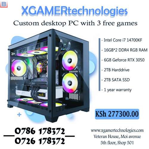 FEATURES : PROCESSOR : 14th Generation Intel Core i7 14700KF upto 5.6GHz 20Core_28Threaded LGA1700 Processor for desktop / FANS and HEATSINKS: Intel stock Fan for core i9_i7_I5_I3 sockets LGA 1700 / MOTHERBOARDS: H610M D4 LGA1700 12th gen Gaming Desktop Motherboard / RAM: 2pc * 16GB DDR4 UDIMM Desktop Ram single stick{ brand new } / CASE FAN: 120MM 6pin interface ARGB CASE FAN with controller {3 pack} / GRAPHICS CARDS: NVIDIA 6GB GeForce RTX 3050 Gaming Graphics Card / POWER SUPPLIES: 650 WATTS 80 plus GamiCentury Gaming Mid Tower M_ATX Computer Casing with glass front and sideng Power Supply / HARD DISKS: 2TB Desktop internal Hard drive / SSD: 2TB 2.5 SATA solid state drive for Desktop and Laptop / WIFI and Bluetooth: 600Mbps WIFI Bluetooth v5 Wireless USB Dual Band Dongle / 1 Year XGAMERtechnologies Guarantee.
