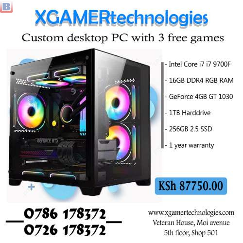 FEATURES: PROCESSOR : 9th Generation Intel Core i7 9700 upto 4.7GHz 8Core8Threaded LGA1151 Processor for desktop / FANS and HEATSINKS: Stock like desktop led fan lga775 115x 1700 and 1366 molex 4pin heatsink / MOTHERBOARDS: H310M 89th Generation Gaming Desktop Motherboard / RAM: 16GB DDR4 UDIMM Desktop Ram single stick{ brand new } / COMPUTER CASINGS: Century Gaming Mid Tower M_ATX Computer Casing with glass front and side / CASE FAN: 3pc * 120MM Multi Color RGB CASE FAN {PWM and Molex} / GRAPHICS CARDS: NVIDIA GeForce 4GB GT 1030 Graphics Card / POWER SUPPLIES: 550 WATTS 80plus bronze Gaming Power Supply / HARD DISKS: 1TB Desktop internal 7200rpm Hard drive / SSD: 256GB OEM 2.5inch SATA solid state drive { brand new SSD } for Desktop and Laptop / WIFI and Bluetooth: 600Mbps Wi-Fi Bluetooth v5 Wireless USB Dual Band Dongle / 1 Year XGAMERtechnologies Guarantee.